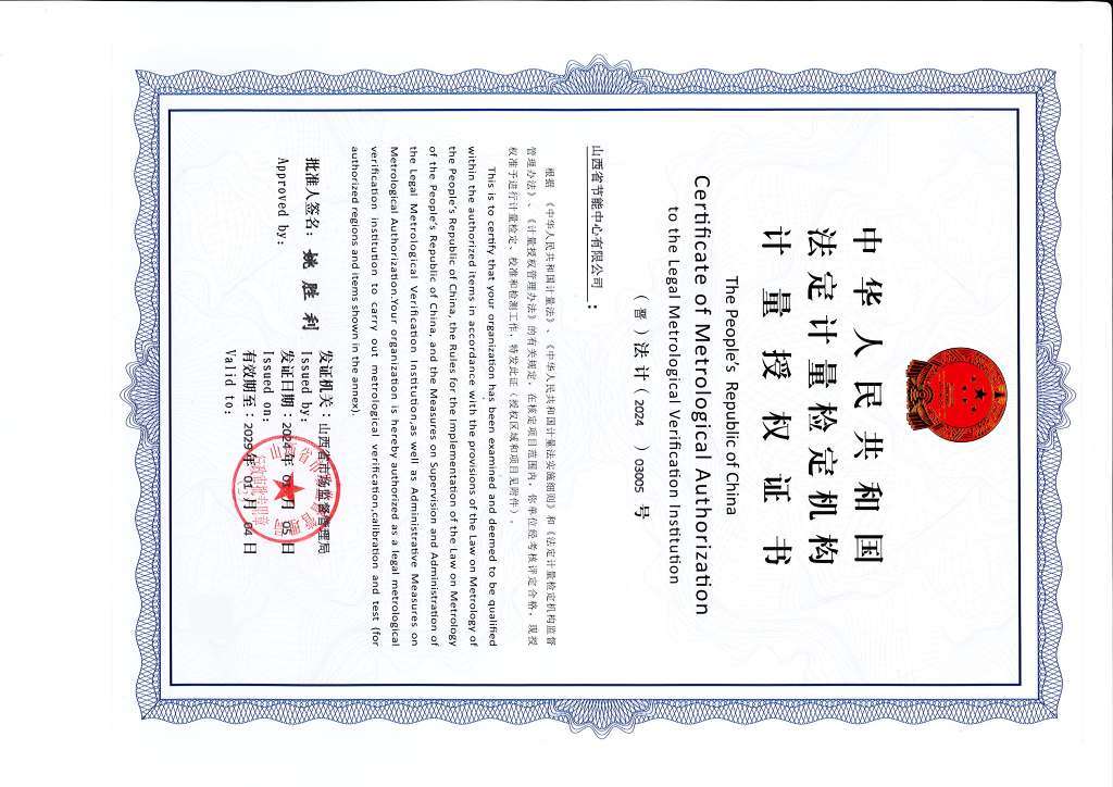 法定計量檢定機(jī)構(gòu)授權(quán)證書