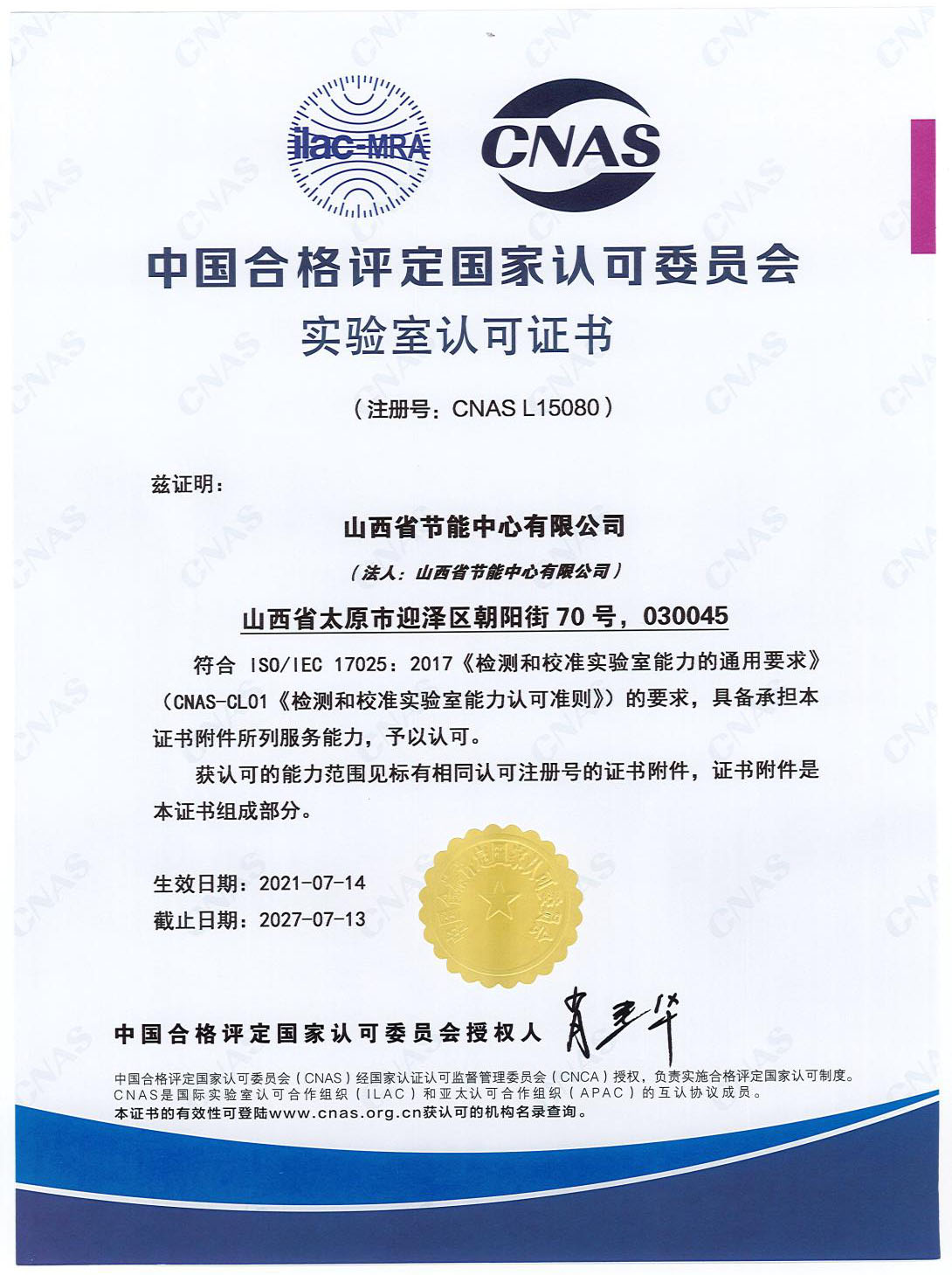 CNAS實(shí)驗(yàn)室認(rèn)可證書